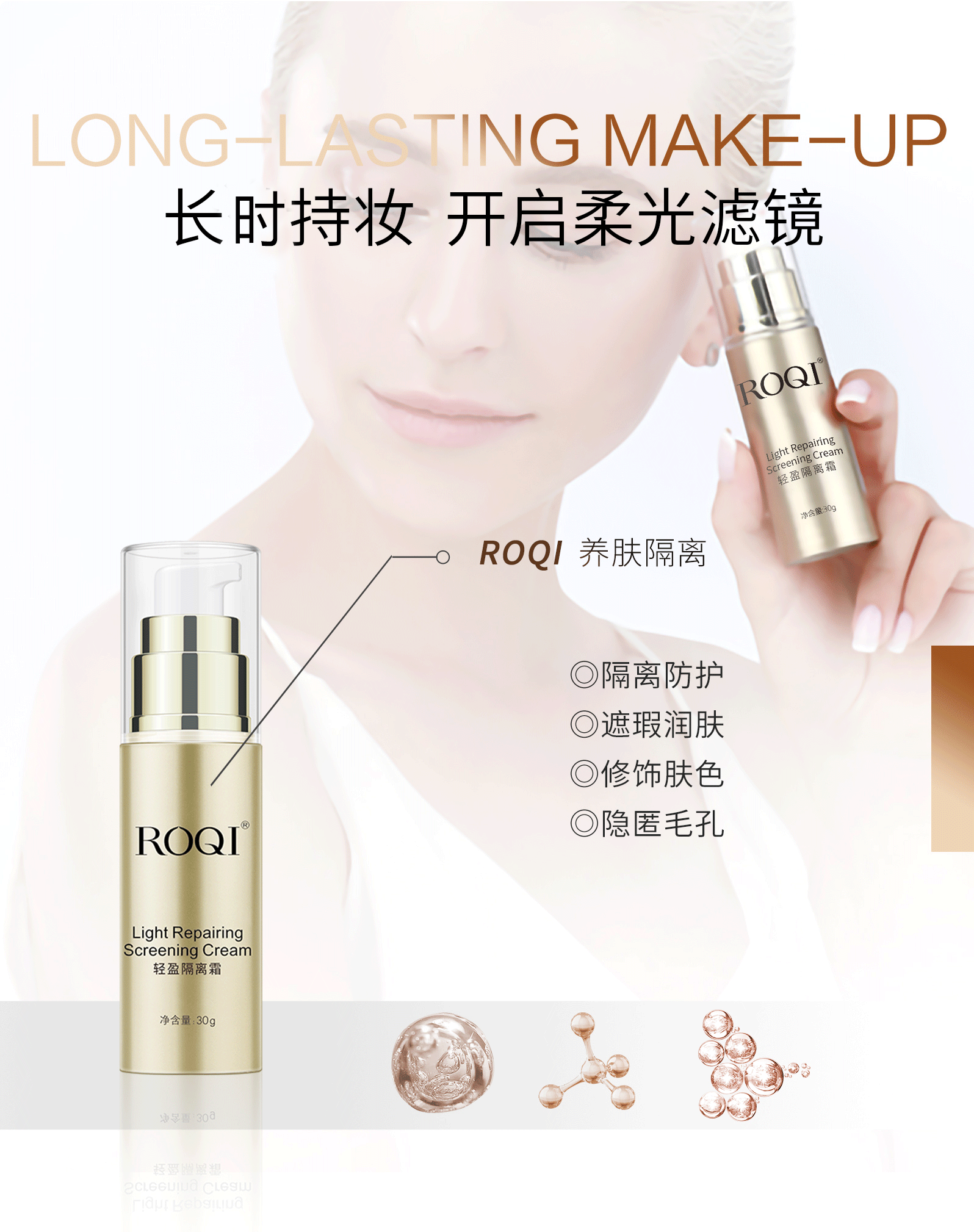 隔离防护,遮瑕润肤,修饰肤色,隐匿毛孔,